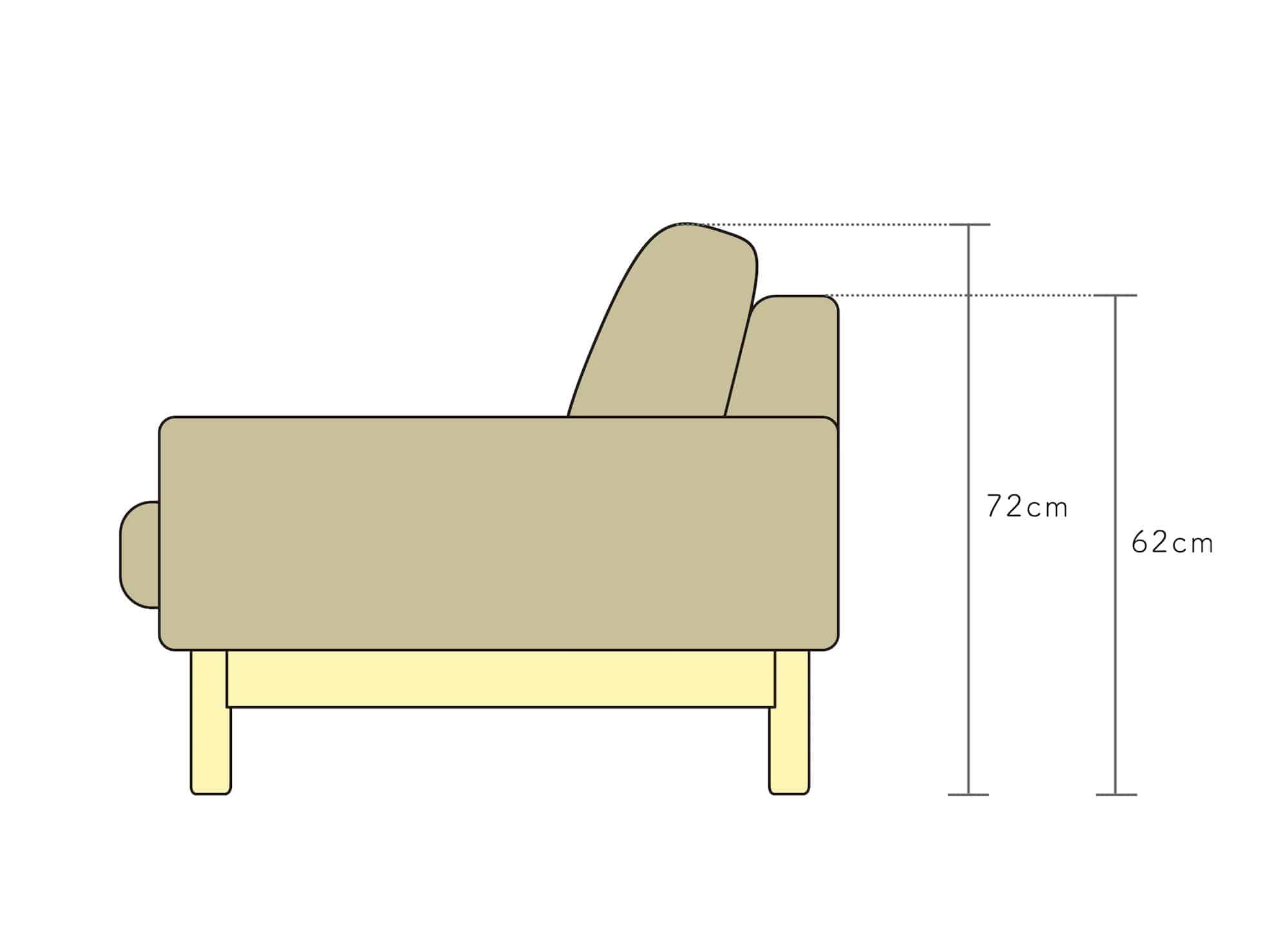 全体の高さは約72cmで、クッションをはずすと約62cmになります。