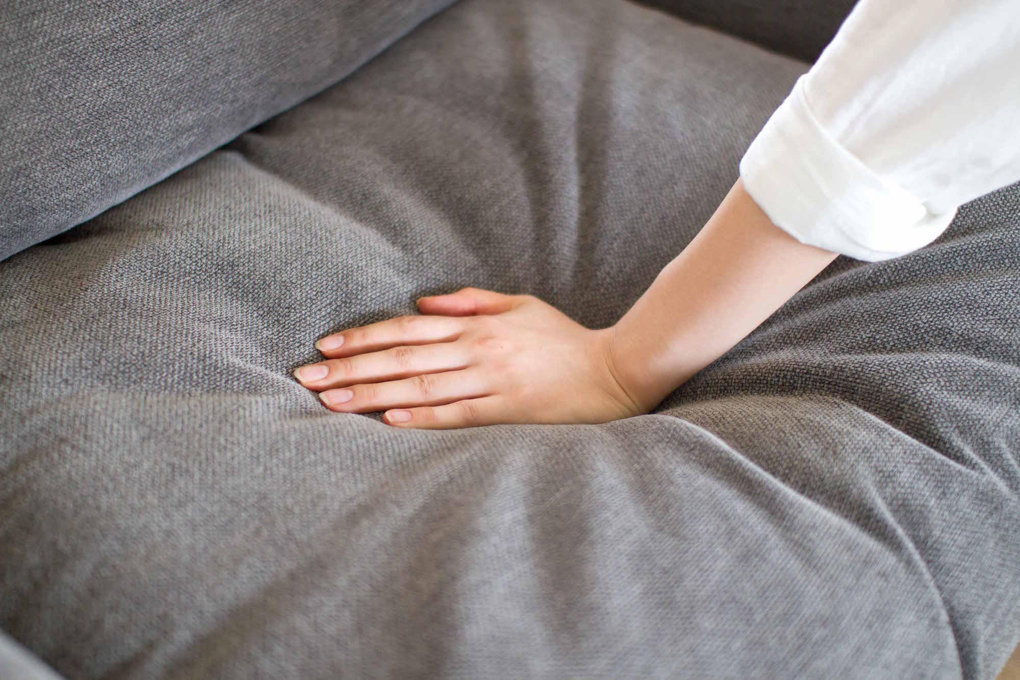 バージュソファは手で座面を押してもわかるほど、クッション材の表面は柔らかくできています。