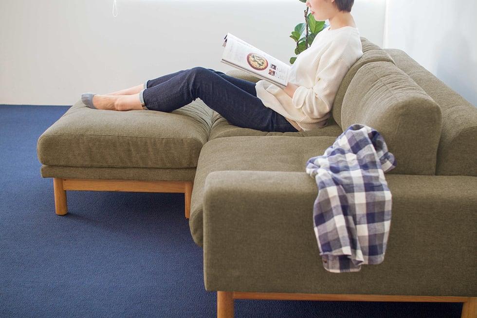 お部屋のスペース的に大きなソファが置けない方には1P +オットマンをお選びいただけば、自分だけの安らげる場所を簡単につくれます。
