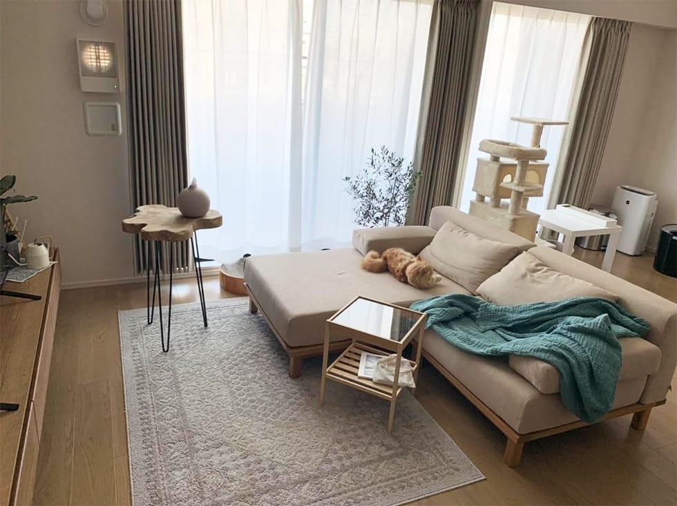 "猫もお気に入りで、いつもソファで寝ています。こちらのソファは猫が引っ掻いて傷ができてもカバーだけ交換できるためそこも決め手でした!"