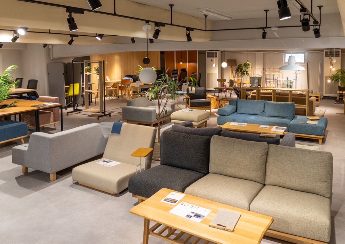 ショールームでは、実際に商品にお手で触れていただけます。生地の質感を確かめたり、ソファの座り心地を体験してみていただけますので、どうぞお楽しみください。