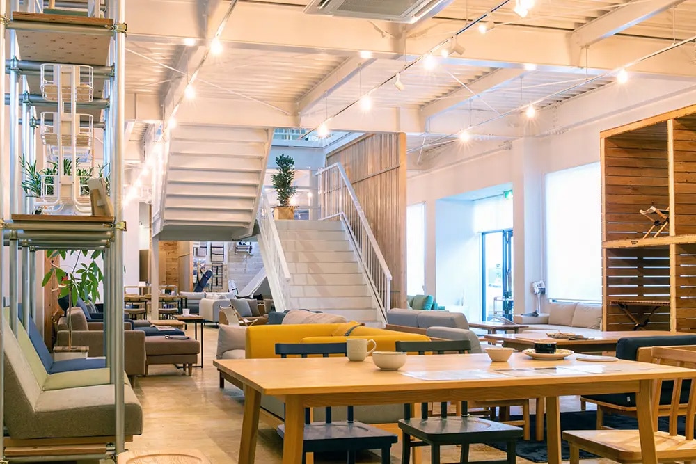 ショールームでは、インテリア家具ブランド「SIEVE(シーヴ)/ ADRS(アドレス) / Mash(マッシュ)の商品や、アウトドアブランド「Hang Out(ハングアウト)の商品などを展示しています。東京都港区にある東京ショールームと福岡県大川市にある九州ショールームでご覧いただけます。
