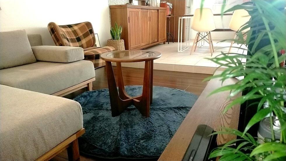 透明な天板のガラステーブルを合わせて、お部屋をスッキリと見せていらっしゃいます。