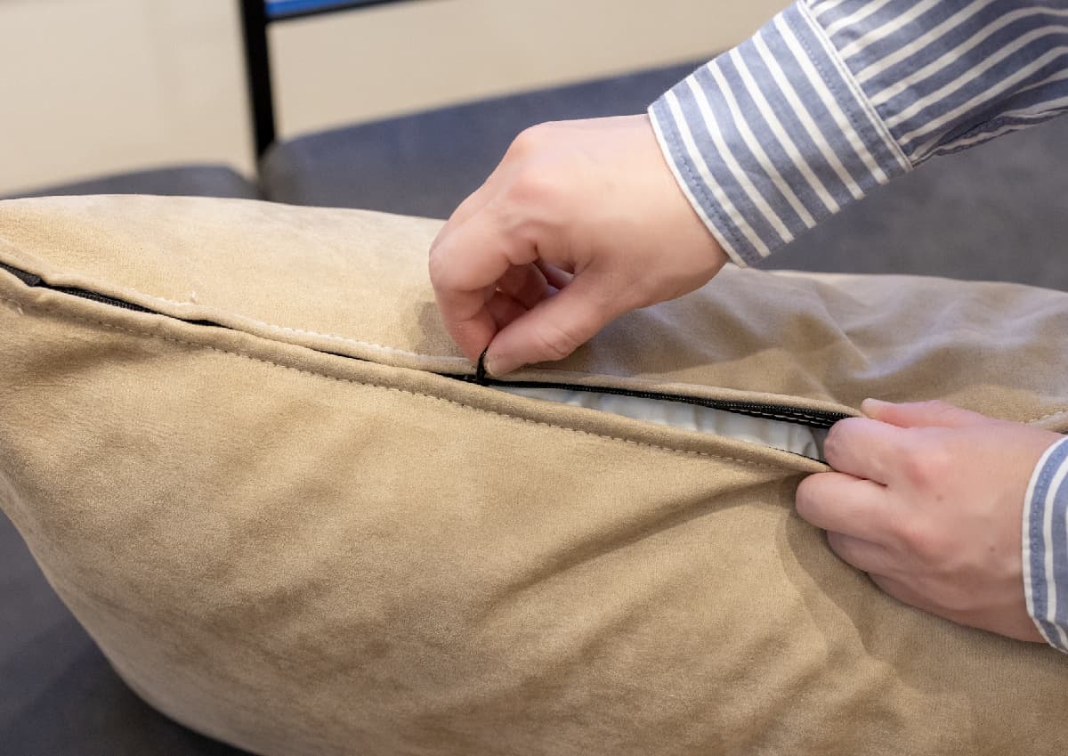 カバーは取り外して洗える『カバーリング』タイプなので、汚れてもご家庭で手洗いでお洗濯ができます。
