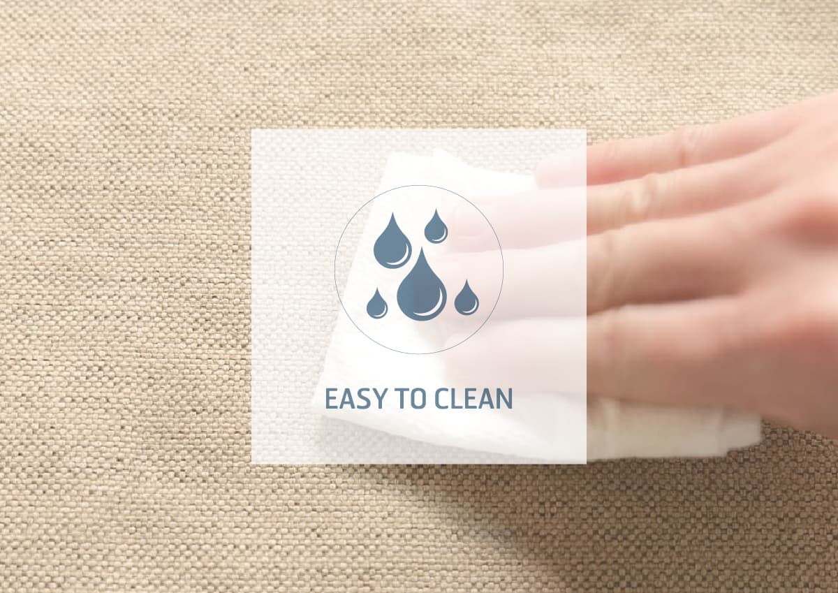 こちらのソファカバーには、Easy to Clean(イージー トゥ クリーン)という特殊な加工を生地に施しており、軽度な汚れなら水だけで落とすことができます。