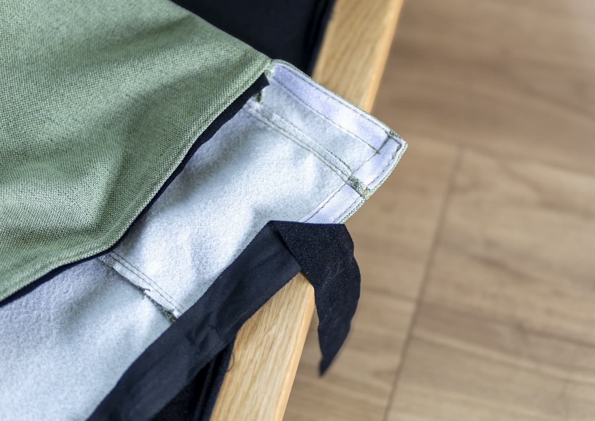 ①まずは汚れを拭き取り、裏側に当て布をするか、カバーをはがします。