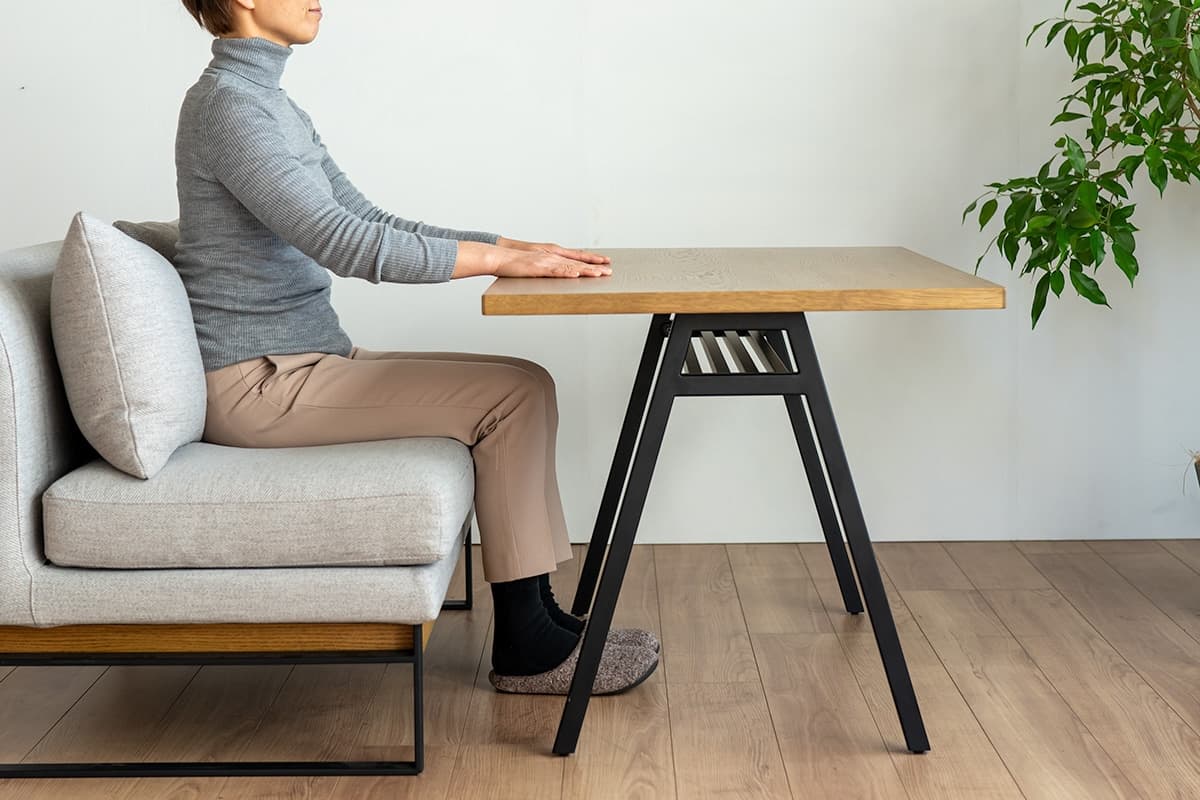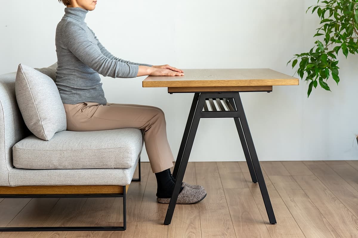 高さが低くなることで、座ったままでもテーブルが自然と手元に近くなり、リラックス感が向上。読書やくつろぎタイムに