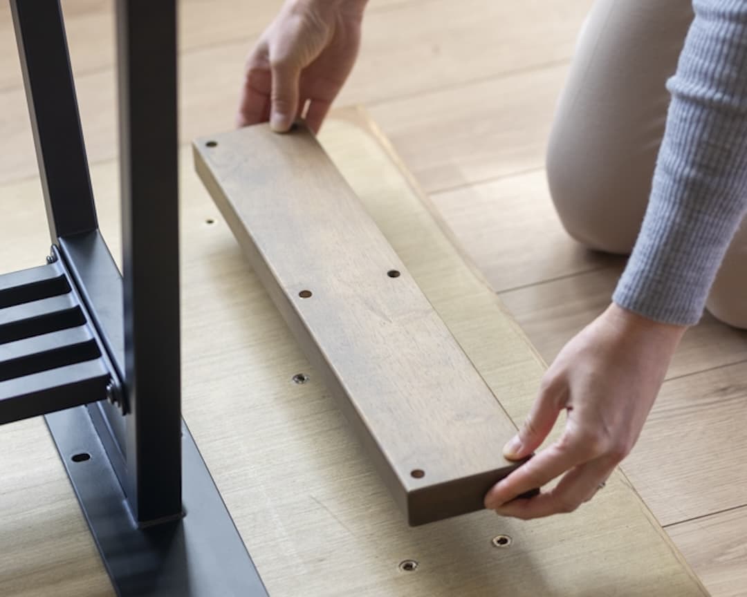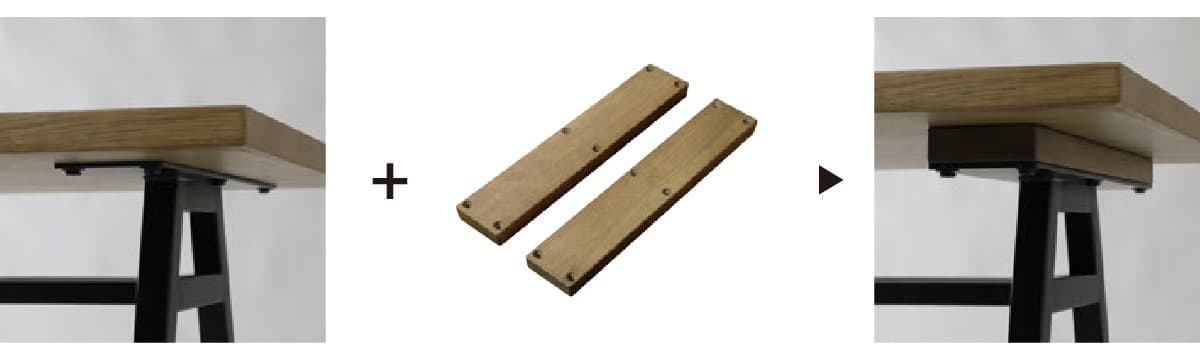 付属の木製パーツを天板と脚の間に挟んでボルト締めしていただく事で、天板の高さが3cm調整することができます。