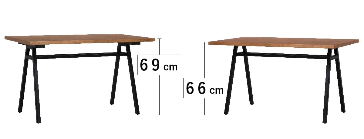 付属部品により、天板の高を ハイタイプの「69cm」とロータイプの「66cm」の2通りから選べて変えられるようになりました。