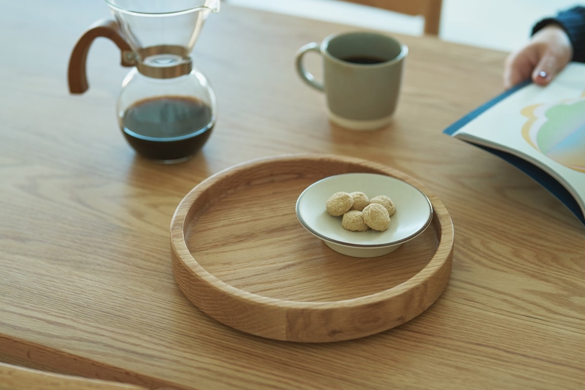 陶磁器の平皿を模したリビング用トレイです。