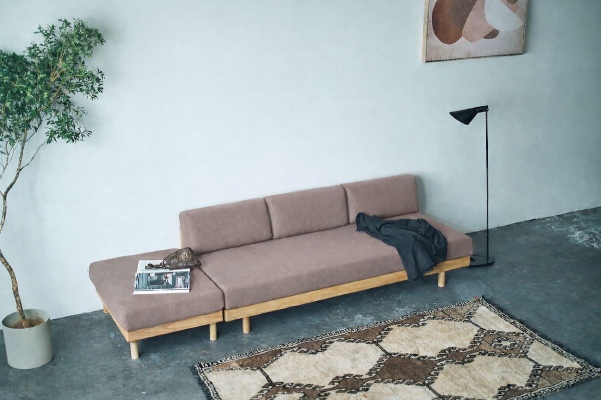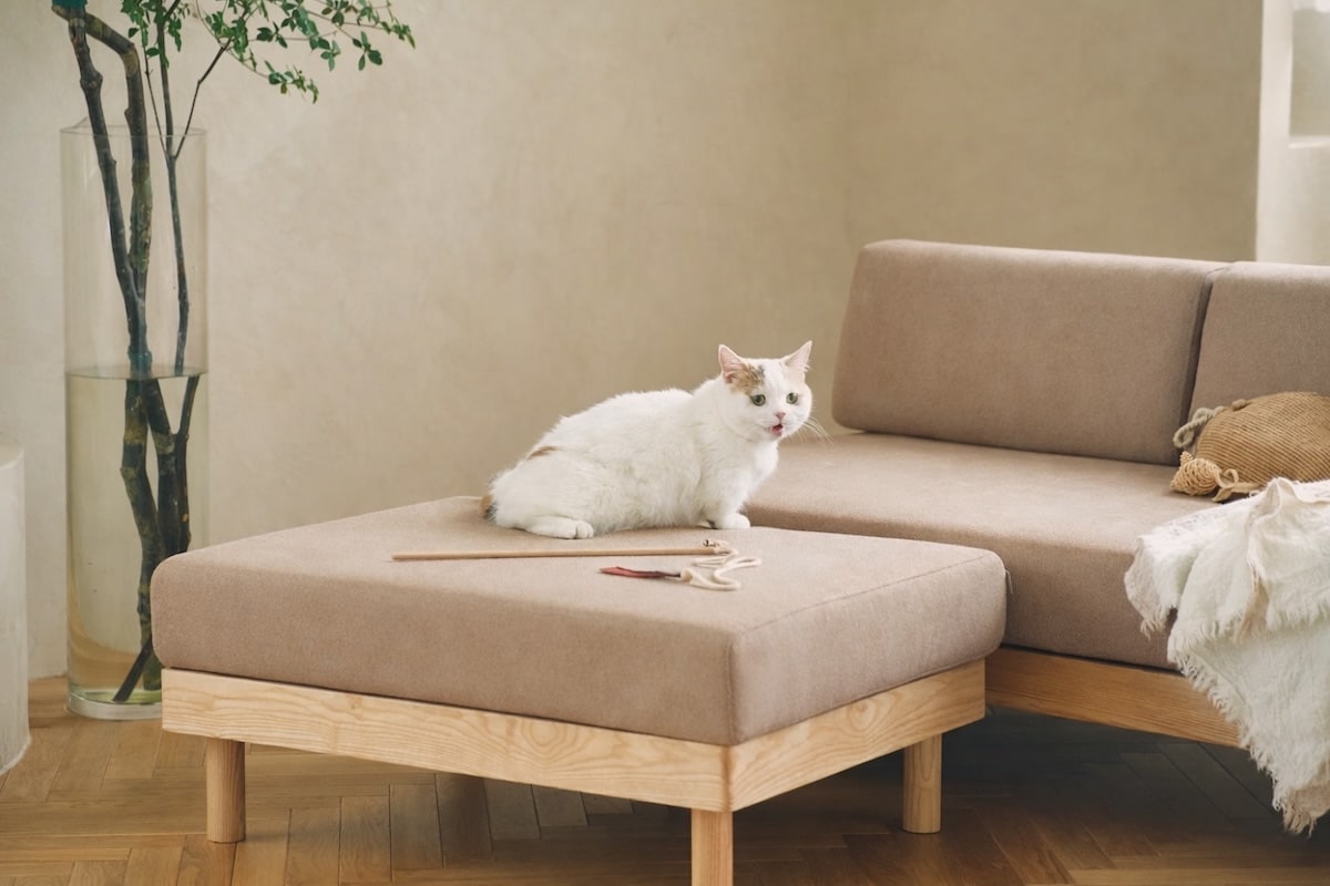 つめの引っかきに強い生地を使用した、ALLLL(オール)のモーニングデイベッドソファに、オットマンが新たに加わりました。