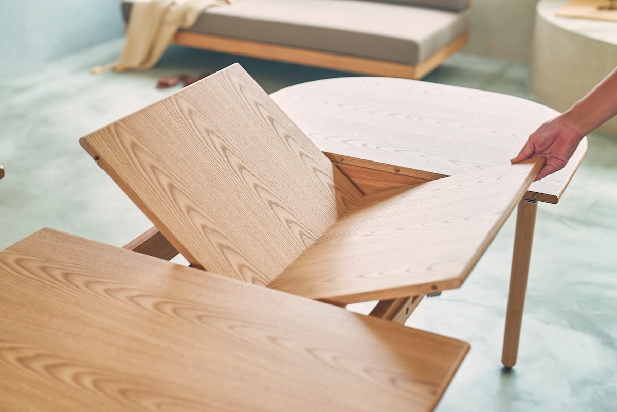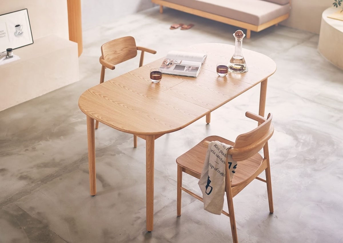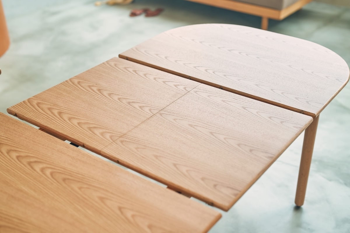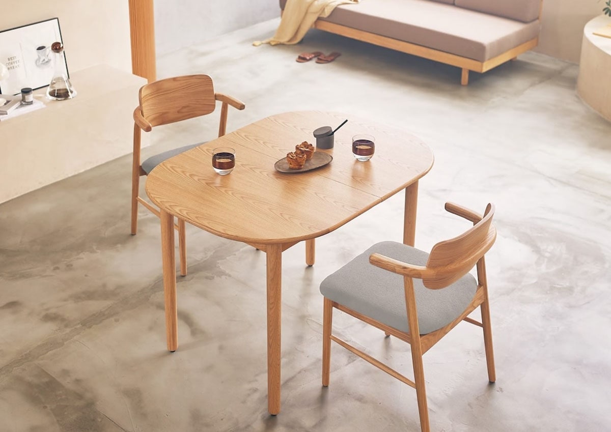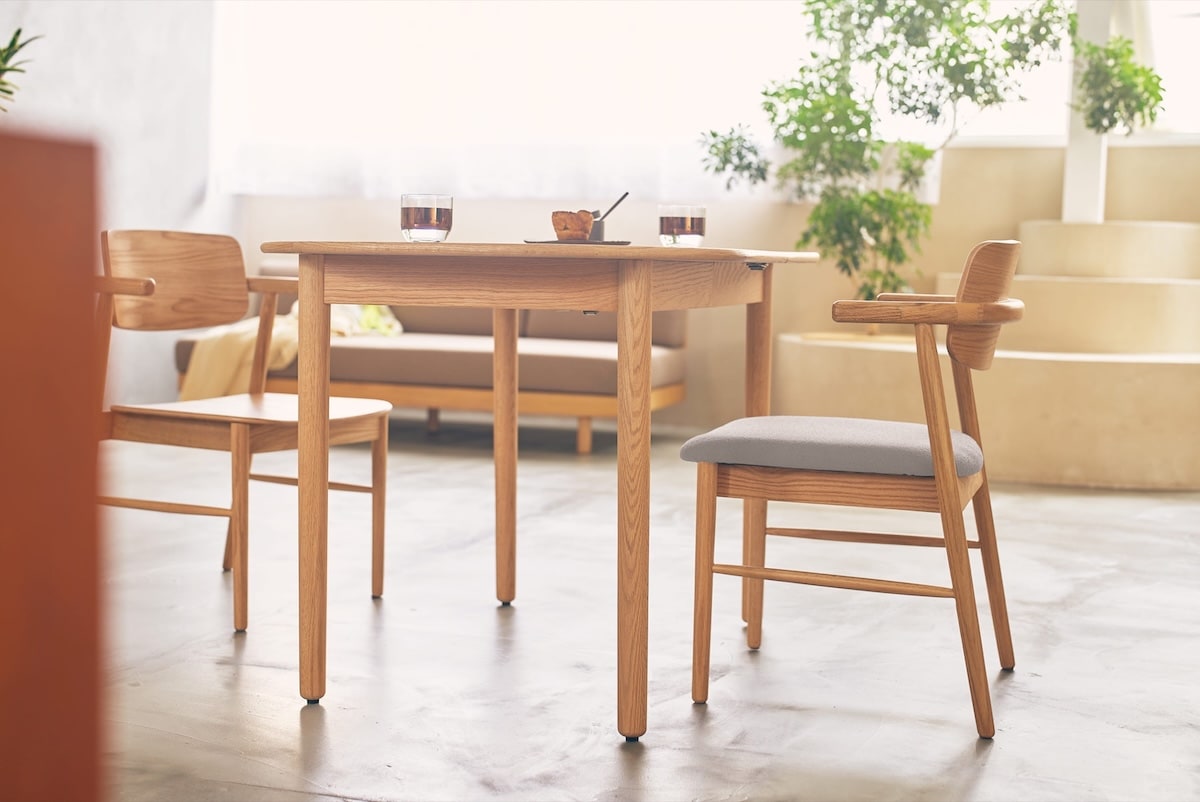 「大きなテーブルは普段持て余してしまうけれど、狭すぎるのも困る」という住まいの現実に、ちょうどよくフィットするバランスです。