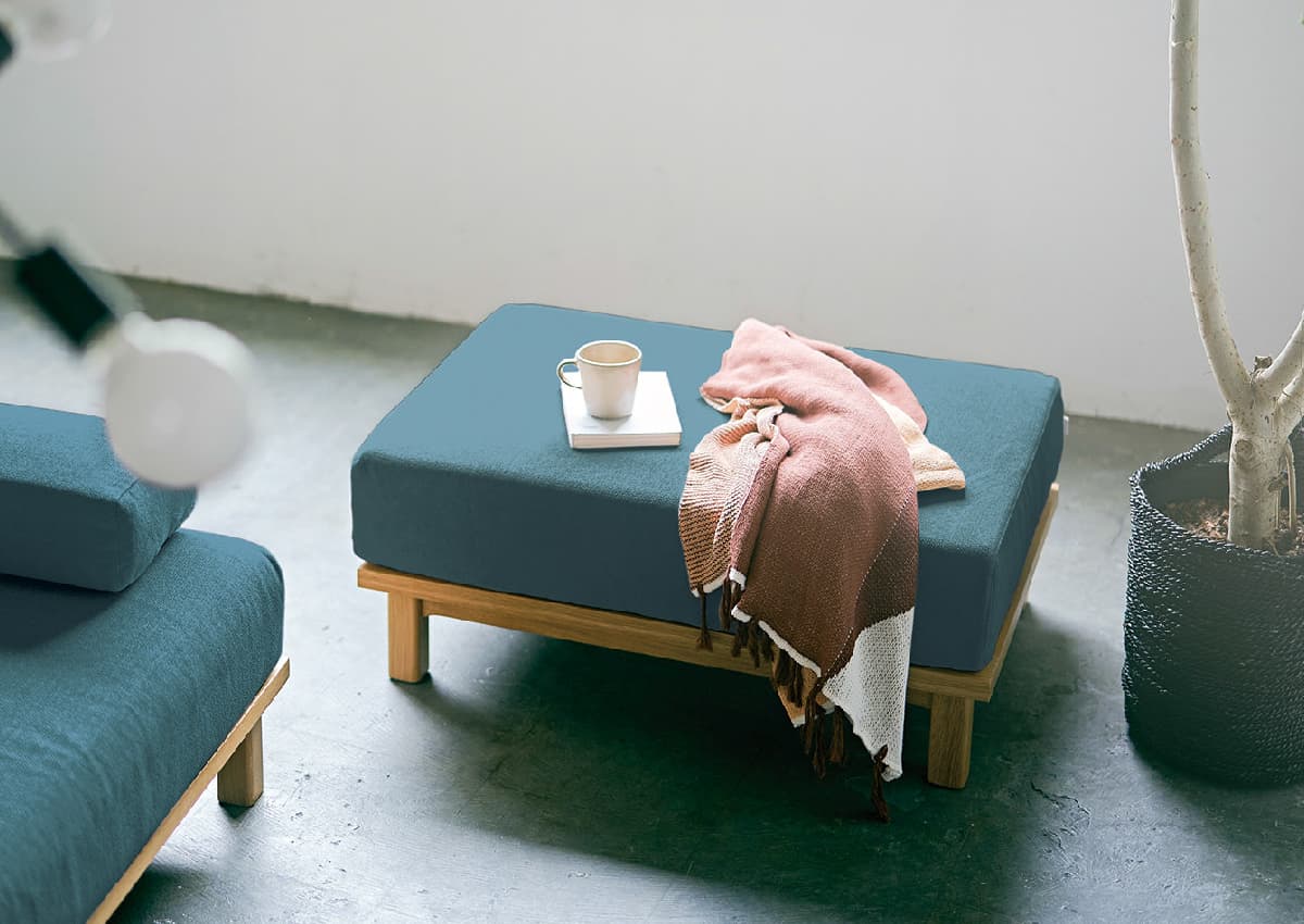 オットマンは、単体で背もたれのないソファとして使ったり、ソファと組みあわせて、足を伸ばして座ったりできるソファです。